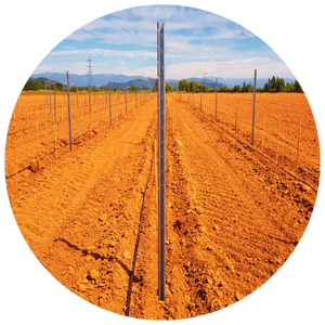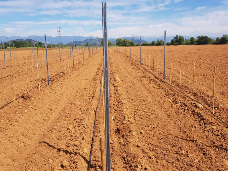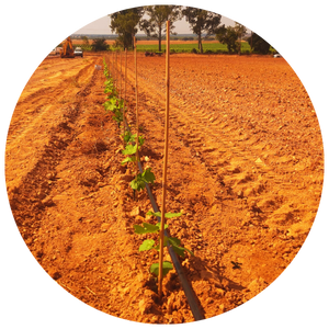 Colocamos o tutor de altura variável entre os 80cm até 240cm (bambu, ferro, fibra, madeira) a uma profundidade entre os 25 a 40cm