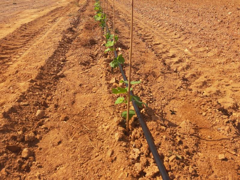 Desenrolamos o tubo de rega gota a gota até uma quanditade de 3 rolos por passagem